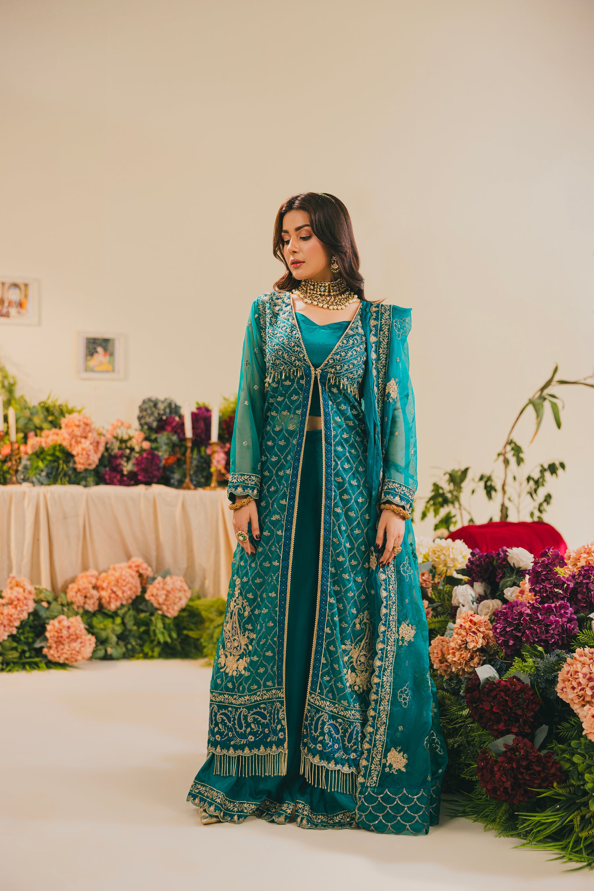 Embroidered Organza border Duppata /trouser