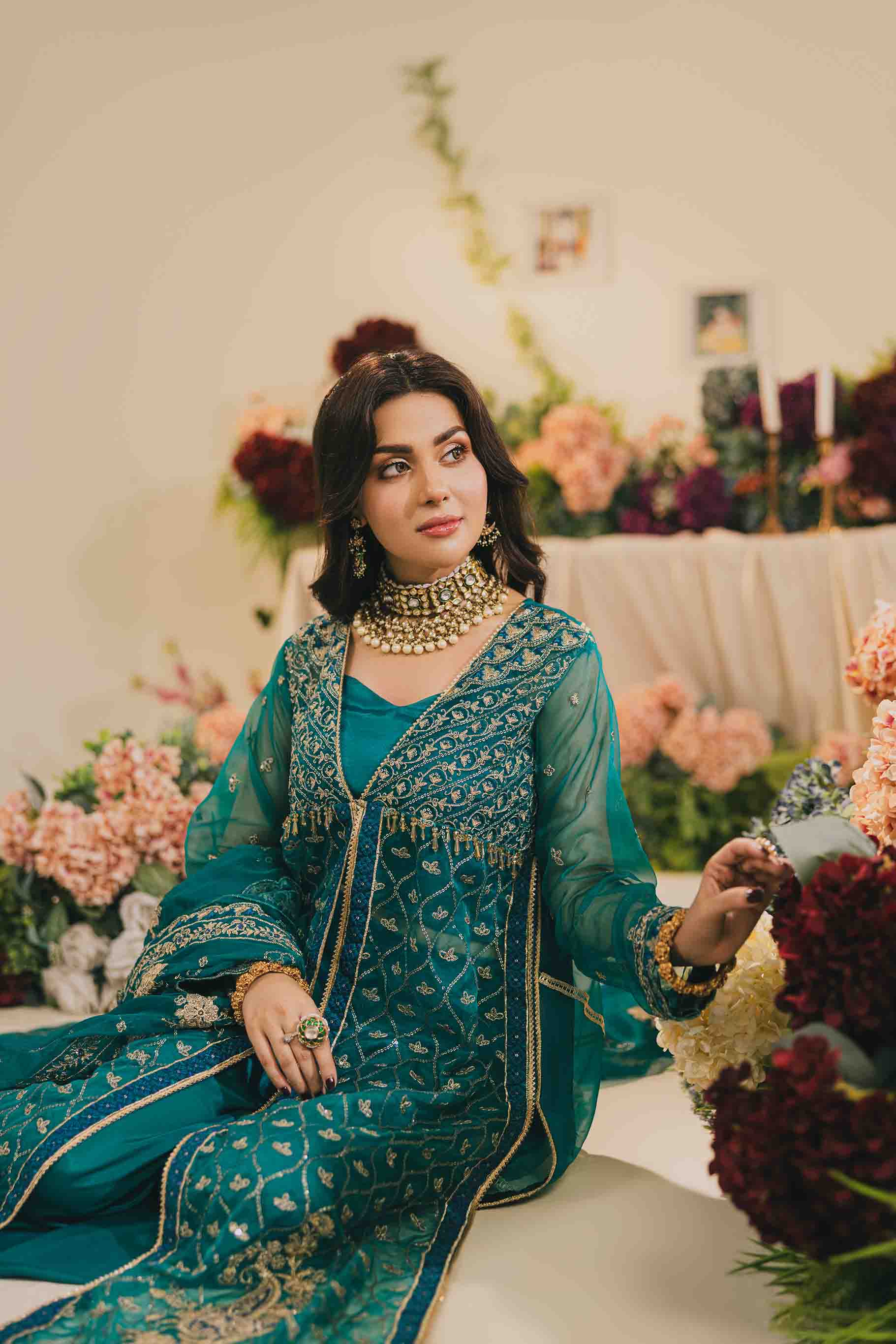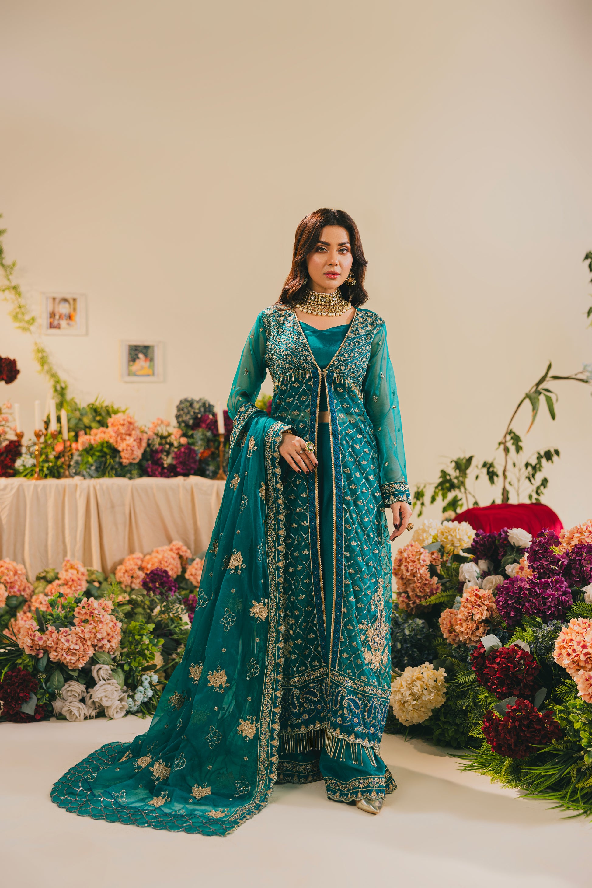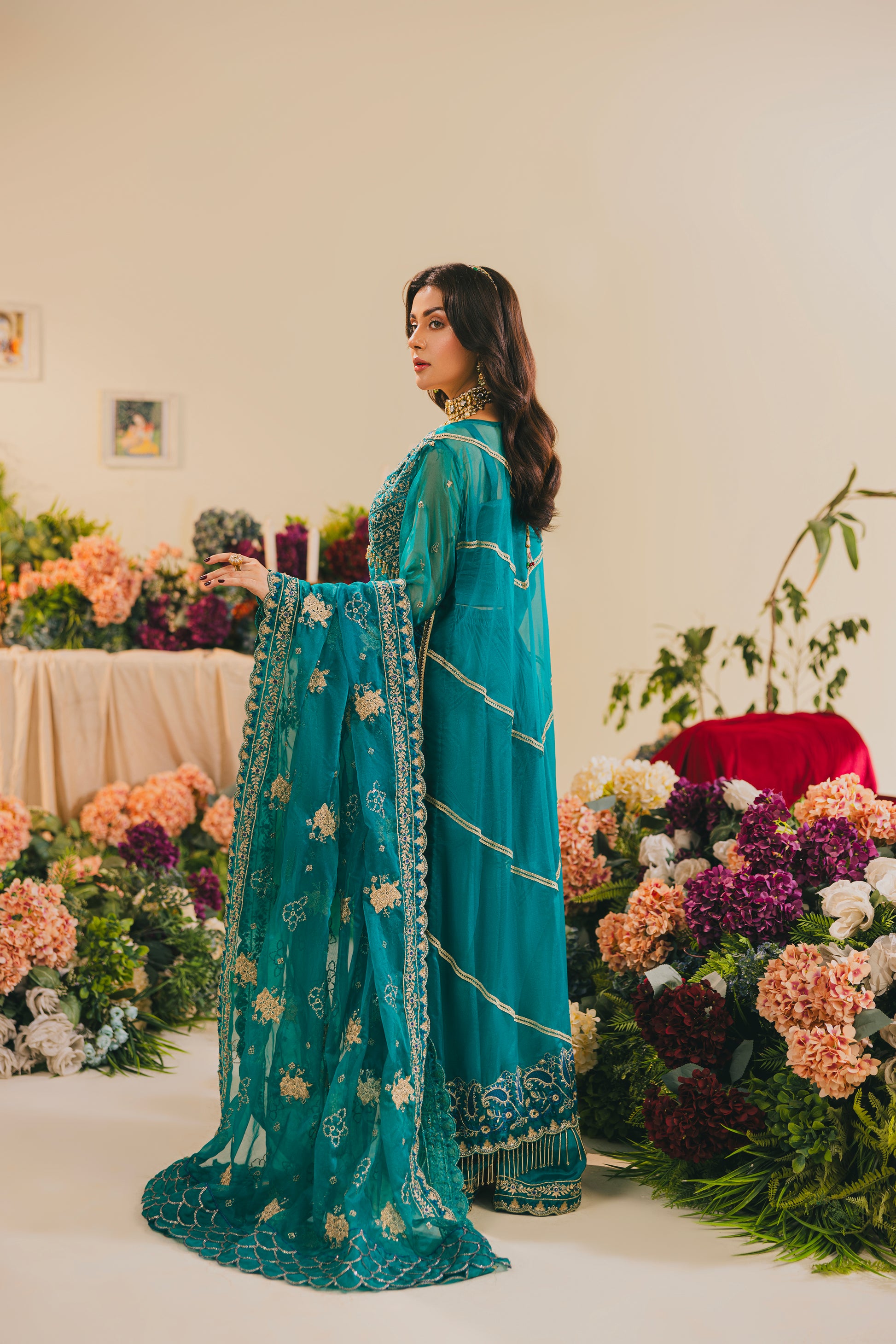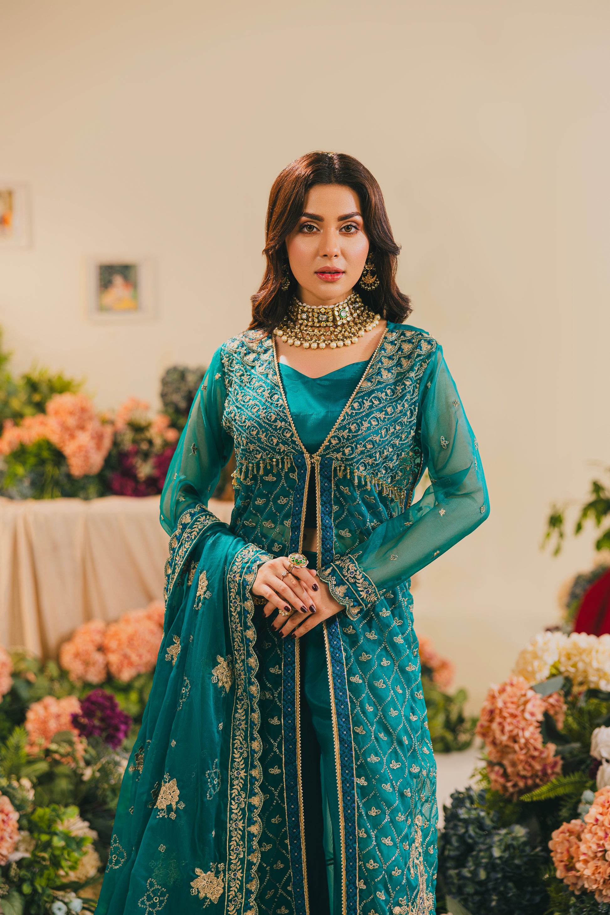 Embroidered and Sequence Pure Organza Front