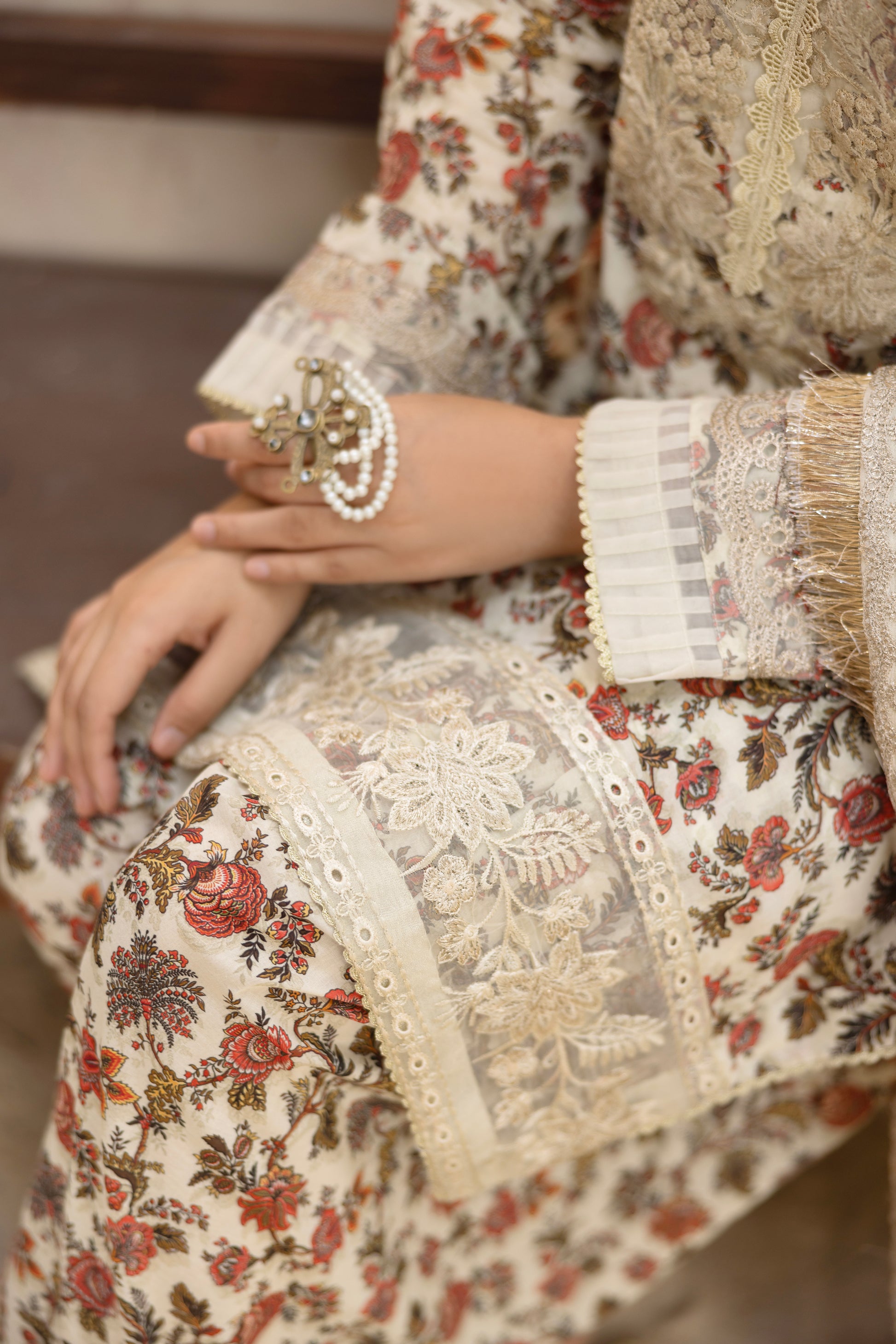 Embroidered Sleeves border on Organza