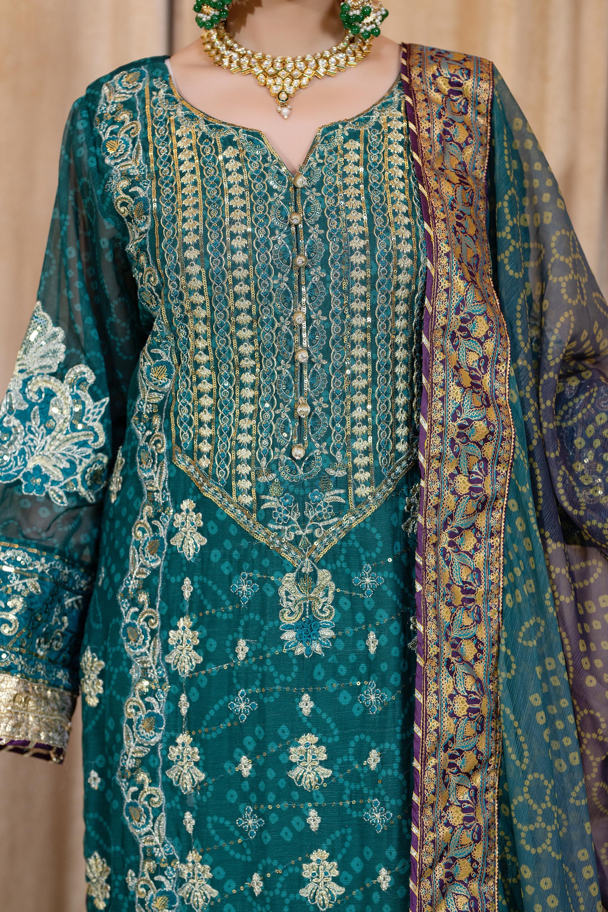 Embroidered Printed Chiffon Center Panel